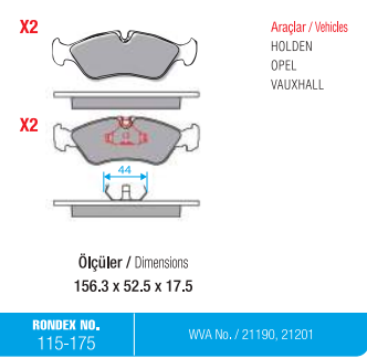 Rondex 115-175 Opel Astra C Ön Fren Balatası