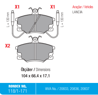 Rondex 118-1-171 Fiat Tempra Ön Fren Balatası