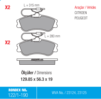 Rondex 122-1-190 Citroen Xsara Ön Fren Balatası