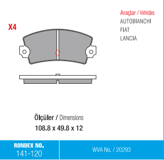 Rondex 141-120 Lancia Ön Fren Balatası
