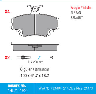 Rondex 145-1-182 Renault Clıo Ön Fren Balatası