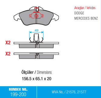 Rondex 199-200 Mercedes Sprınter Ön Fren Balatası