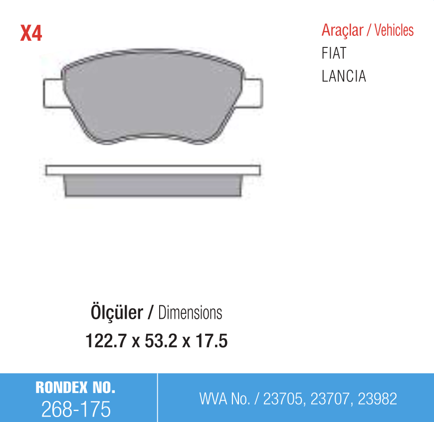 Rondex 268 – 175 Fiat Albea Fren Balatası
