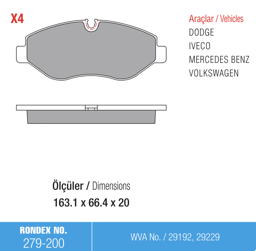 Rondex 279 – 200 Mercedes Sprinter Fren Balatası