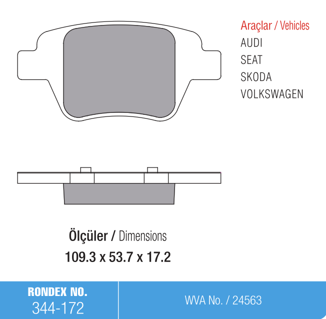 Rondex 344-172 Volkswagen Caddy Fren Balatası