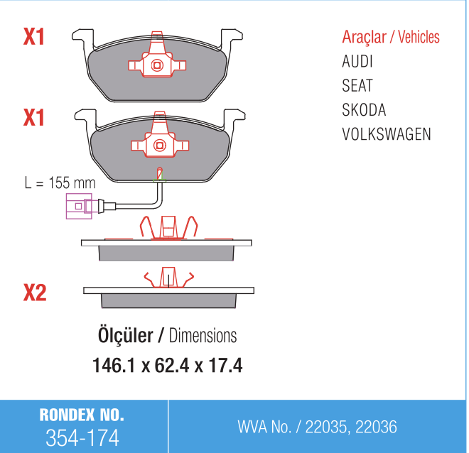 Rondex 354-174 Volkswagen Golf 7 Fren Balatası