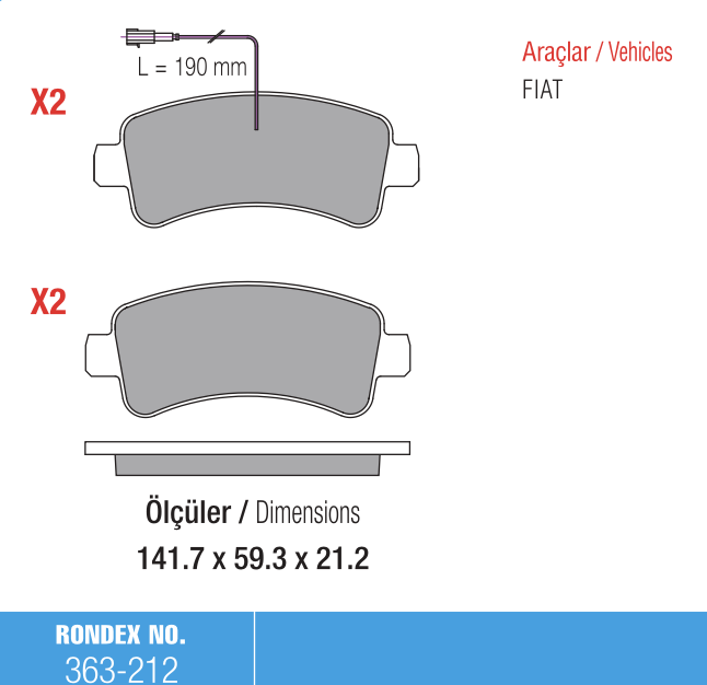 Rondex 363-212 Fiat Ducato Fren Balatası