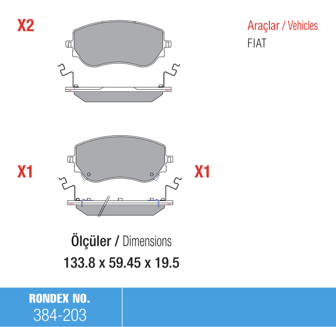 Rondex 384-203 Fiat Egea Fren Balatası