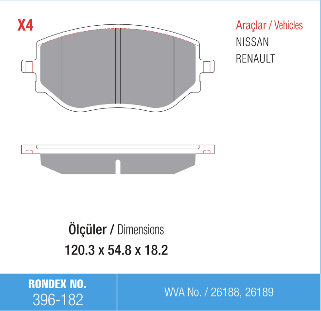 Rondex 396-182 Renault Clio 4 ÖN Fren Balatası